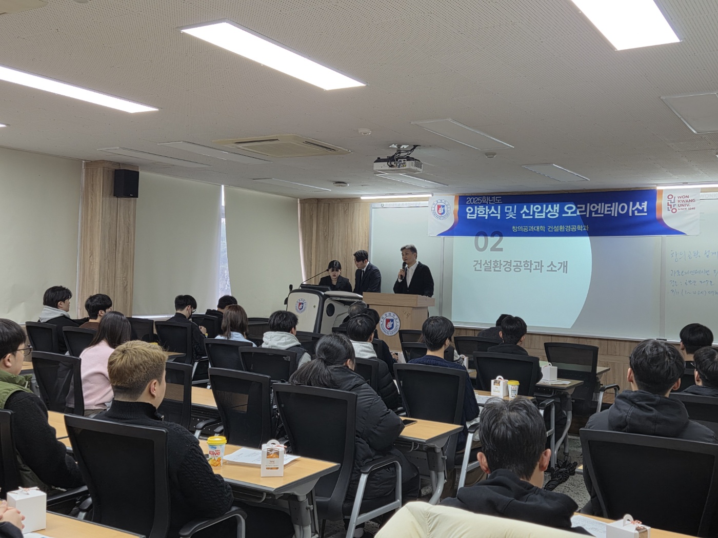 2025학년도 3월 4일 (화) 12시 원광대학교 창의공과대학 307강의실에서 건설환경공학과 신입생 OT가 진행되었습니다.