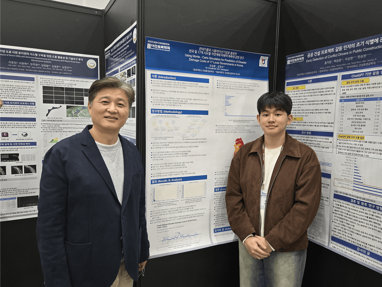 우리 원광대학교 건설환경공학과에서는 김경석 교수와 오승환 학생이 ‘몬테카를로 시뮬레이션기법을 활용한 전국 및 17개 시도별 자연재해 피해액 예측에 관한 연구(Using Monte – Carlo Simulation for Prediction of Disaster Damage Costs of 17 Local Governments in Korea)’ 라는 주제로 참여 하였습니다.